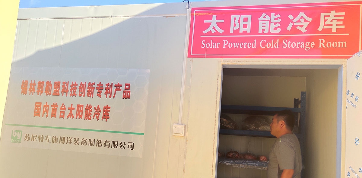 牧民家庭傳統(tǒng)的冷凍儲藏設(shè)備為冰箱或者冰柜,但受限于本身容量較小,對一些儲藏量需求較大的牧民家庭并不能滿足其需求。我公司開發(fā)的太陽能冷庫因具有儲藏容量大、節(jié)能環(huán)保、可方便移動的特點,可在無電牧區(qū)方便使用。該太陽能冷庫容積為16m3,通常儲藏溫度設(shè)置在-18℃時壓縮機(jī)停止工作以節(jié)省電量,當(dāng)內(nèi)部溫度上升到-14℃,壓縮機(jī)開始制冷。該太陽能冷庫日耗電約8度,冷庫采用直流壓縮機(jī)使其更加節(jié)能環(huán)保。